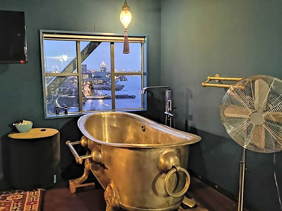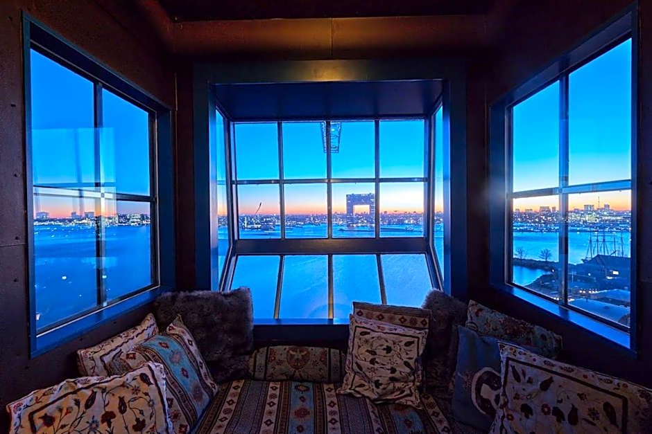 This air conditioned split-level Suite features antique parts of an ocean cruiser and characteristic sliding panels. Each floor has a plasma TV.